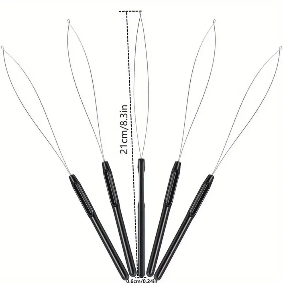10 pcs Hair Extensions Loop Outil de crochet de traction d’aiguille Outil de boucle d’enfilage d’aiguille pour perles de microlien en silicone